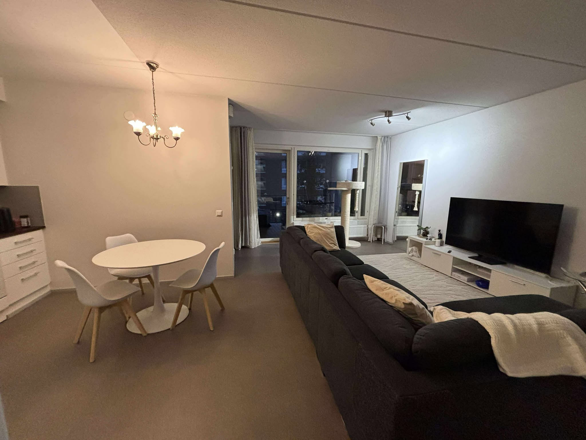 Asunnossa on iso parveke, avokeittiö, tilava olohuone sekä alkovi, joka tuo lisätilaa nukkumiseen tai työskentelyyn.