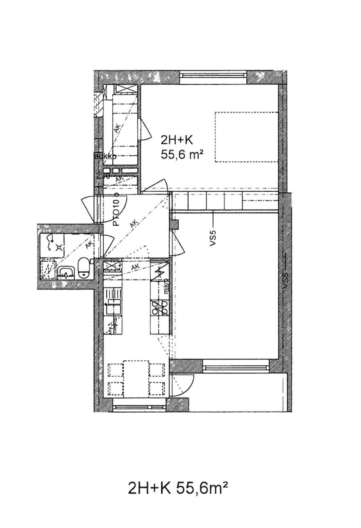 Valoisa läpitalon kaksio erillisellä vaatehuoneella. Rauhallinen talo, pesutupa viereisessä rapussa.