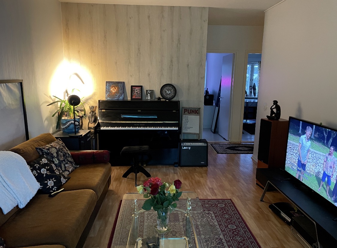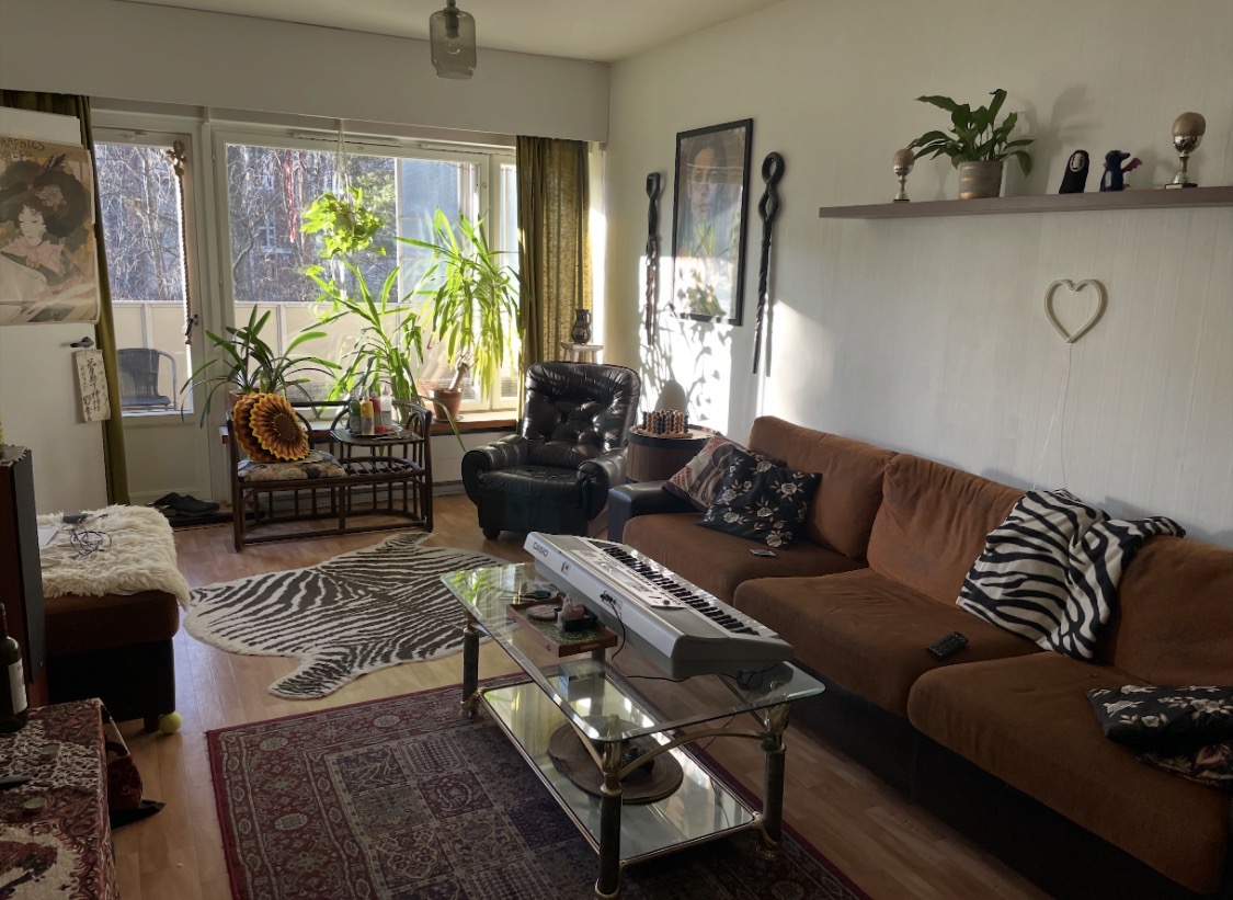 Roihuvuoressa pieni kolmio, 65 m2. Vuokra on 760€, ei erillistä vesilaskua. Asunnossa kaksi eri kokoista makuuhuonetta, olohuone, keittiö ja vaatehuone. Pesukoneelle ja astianpesukoneelle on paikkavaraukset. Asunnossa on iso parveke metsäkaistaleeseen päin. Täältä on hyvät kulkuyhteydet sekä Herttoniemeen että Itäkeskukseen ja raidejokerille. Marjaniemen uimarantaan on noin 8 minuutin kävelymatka.