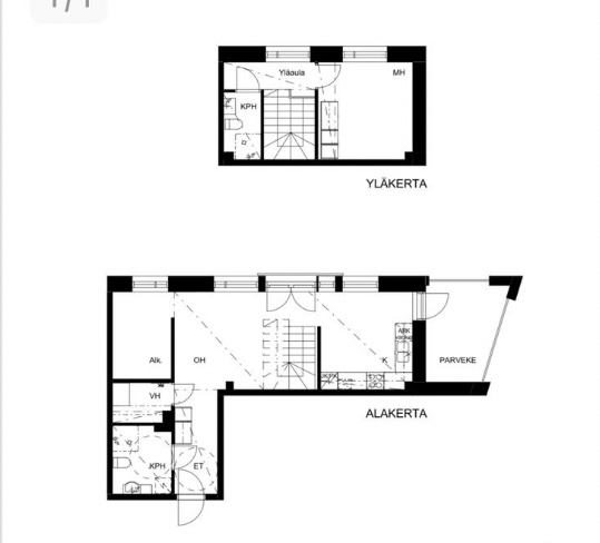 Alkovillinen kaksio, eli saa esim. työhuoneen/vierashuoneen vielä makuuhuoneen lisäksi.